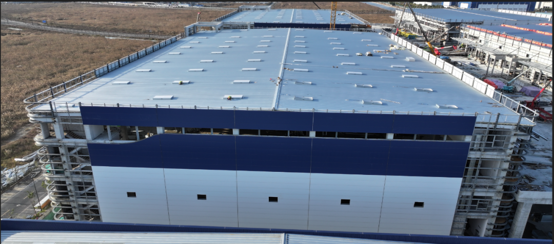 濟寧一建鋼結(jié)構(gòu)工程有限公司承建的金屬屋面及維護工程,涉及1#-4#物流倉庫、高架立體庫。倉庫跨度80米,屋面標高34.1米,為雙向找坡結(jié)構(gòu)。該項目建設(shè)規(guī)模大、工期緊、技術(shù)精度要求高、工況復(fù)雜,自項目開始施工。公司對現(xiàn)場管理嚴格要求,積極配合業(yè)主及總包的整體調(diào)配,施工嚴格執(zhí)行施工方案,遵循規(guī)范標準,合理安排人、機、料等,戮力同心將馬士基臨港旗艦倉項目打造成精 品工程、優(yōu) 質(zhì)工程。